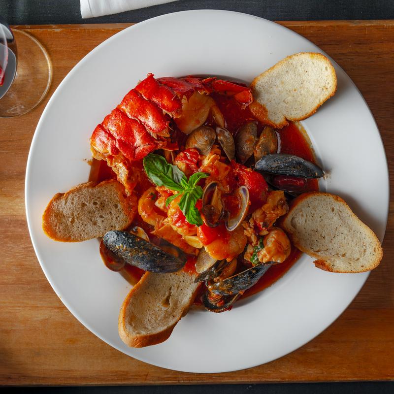 Small $90.00 | Full $170.00 • Seafood stew with mussels, clams, shrimp, lobster