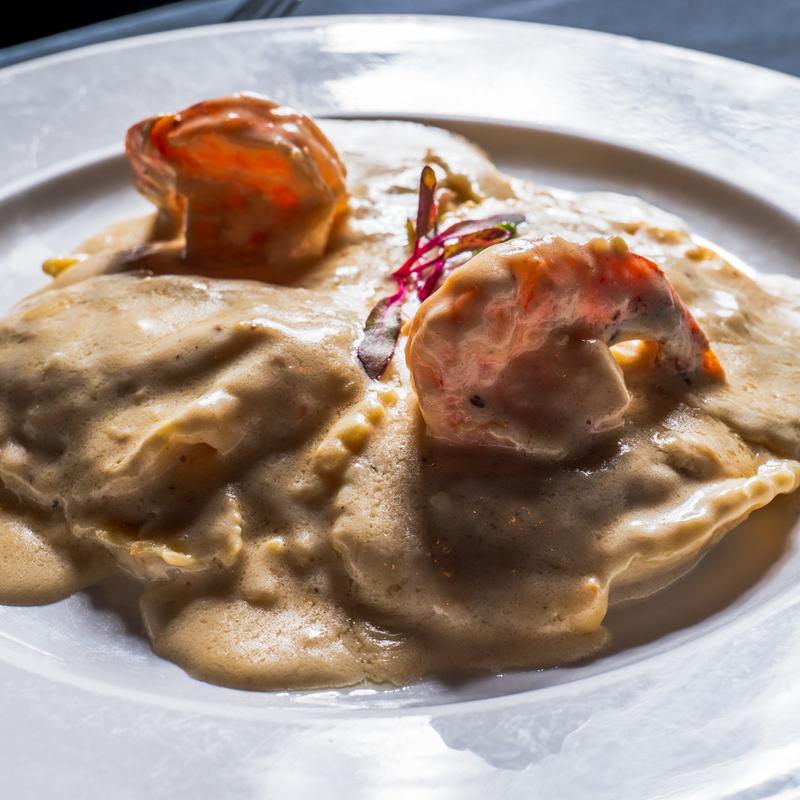 Small $70.00 | Full $130.00 • Lobster and cheese-filled ravioli in a shrimp & garlic cream sauce